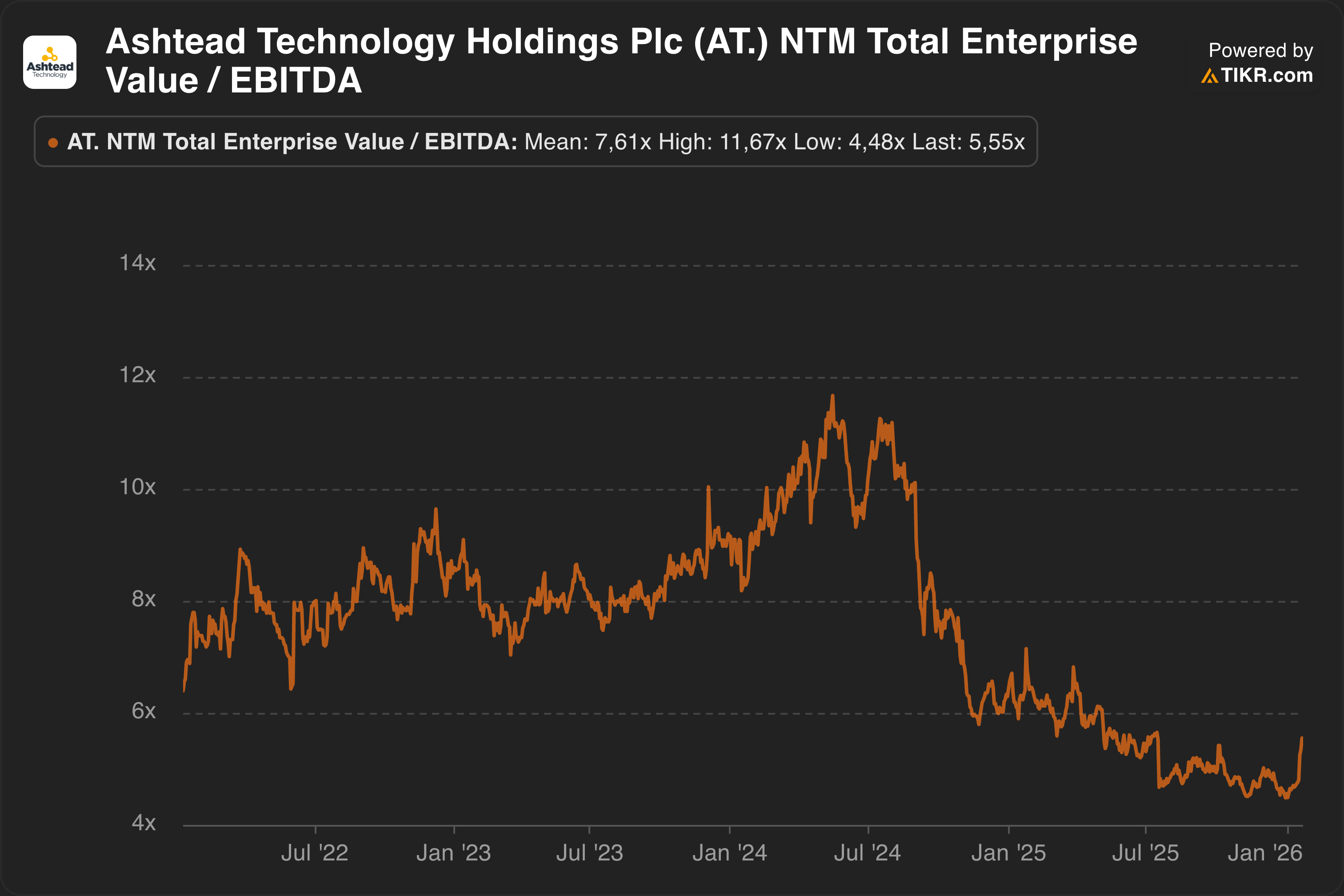 A service provider for the subsea space. They mainly make their revenues from rental equipment. The decline in offshore wind made the stock tumble to new lows. The other reason might be because it's a UK-listed company and they just go down (just kidding). However, they did uplist from the AIM to the LSE; ironically, this caused some AIM-focused funds to sell out. Shares have recovered from their lows in the summer of last year but remain at historically low(er) valuations:
