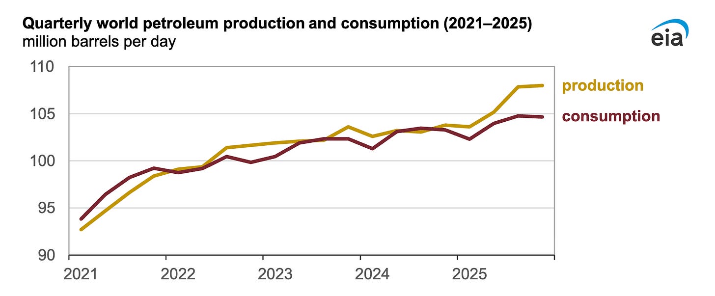 Eia has an outlook for $56 per barrel in 2026, a further decline from 2025. So, no matter which source you look up, most point to a clear oversupply of oil and expect that to continue into 2026.