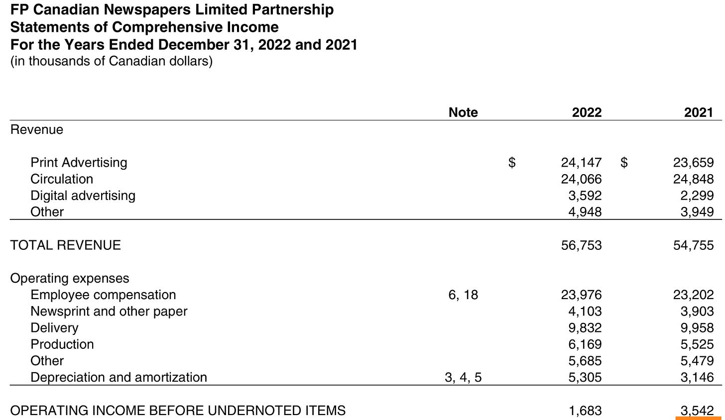 FP Newspaper owns securities representing 49% of the cash flow of FP Canadian Newspapers Limited Partnership ("FPLP"). FPLP owns the Winnipeg Free Press and other smaller regional news and media publications in print and digital formats. At that time, FP Newspaper's market capitalization was approximately CA$5.5 million. In 2021, the underlying business generated CA$3.5 million in EBIT. FP Newspaper is entitled to 49% of that, so that would be CA$1.75 million. Or 3x EBIT. Dirt cheap.