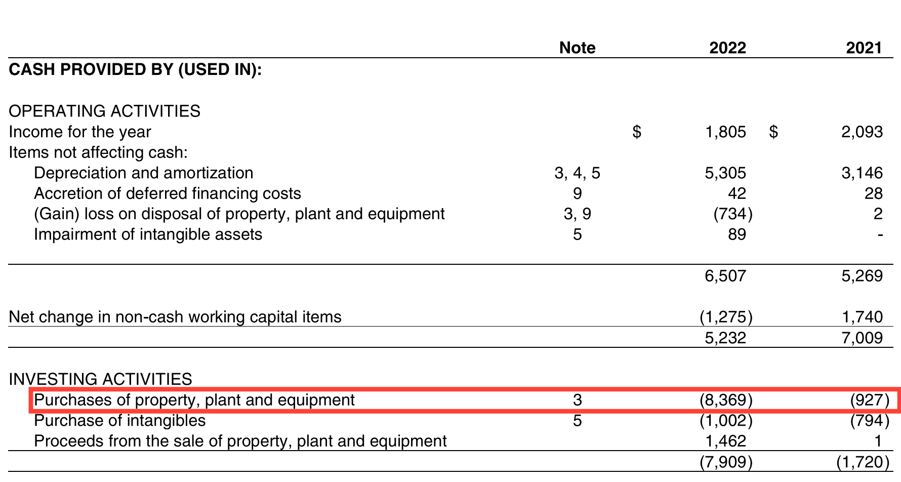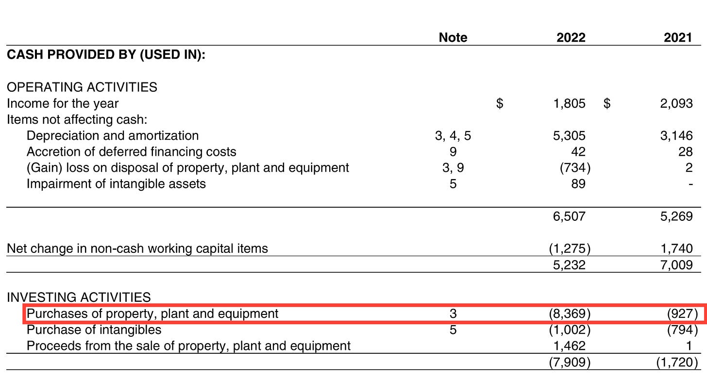 Now, what are the reasons for that. First, they bought a printing press for CA$10 million (see Purchases in PP&E) — only then to return it back.