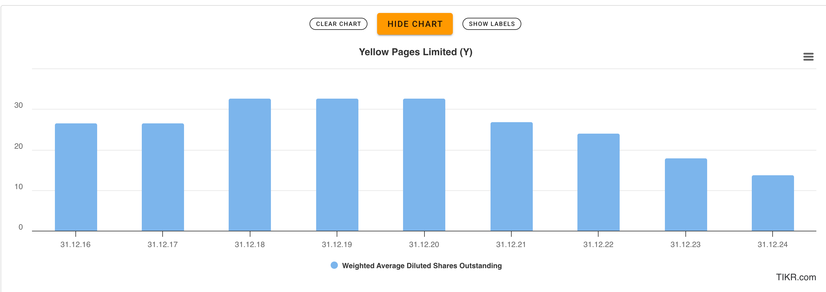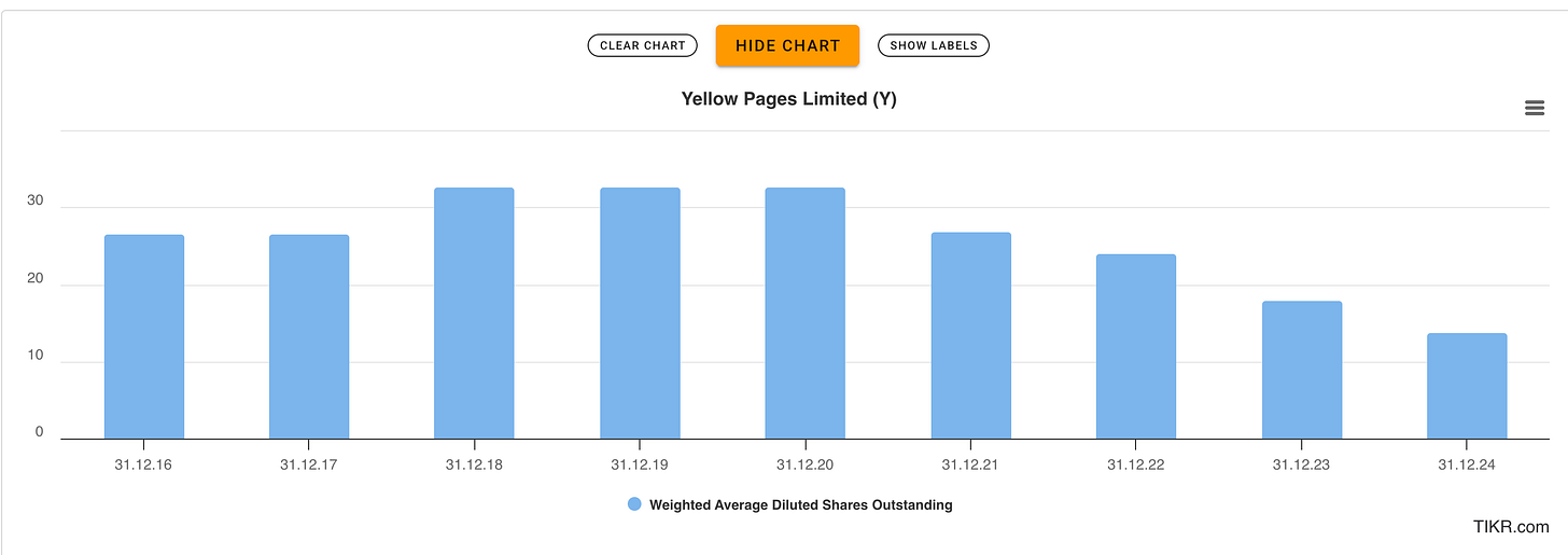 In 2022, the company was trading at an EV of about CA$250 million. Their EBIT in 2022? $77m. Again, 3x EV/EBIT. And they were buying back shares. It doesn't get any better than that. Just look at the number of shares outstanding: