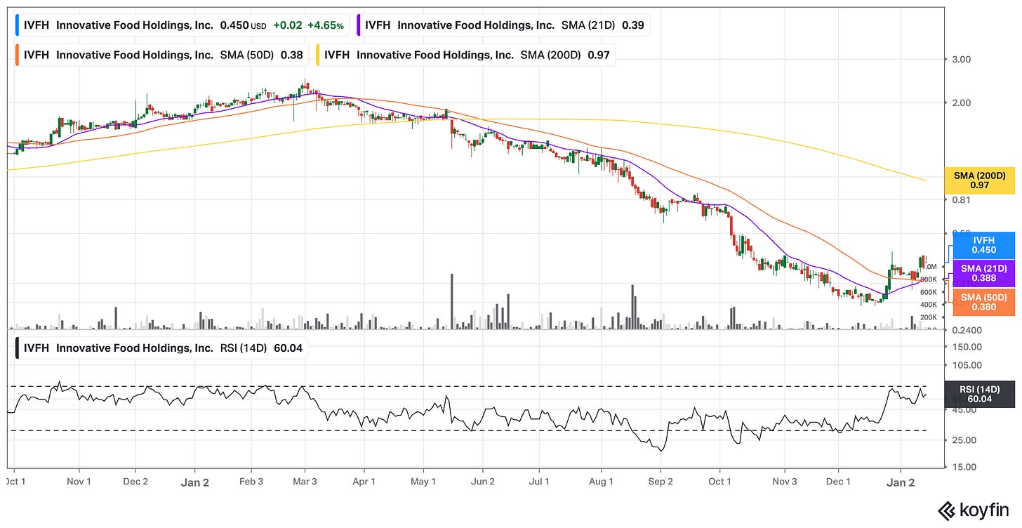 Another company with notable insider buying was Innovative Food Holdings (IVFH) (Disc. I own shares).