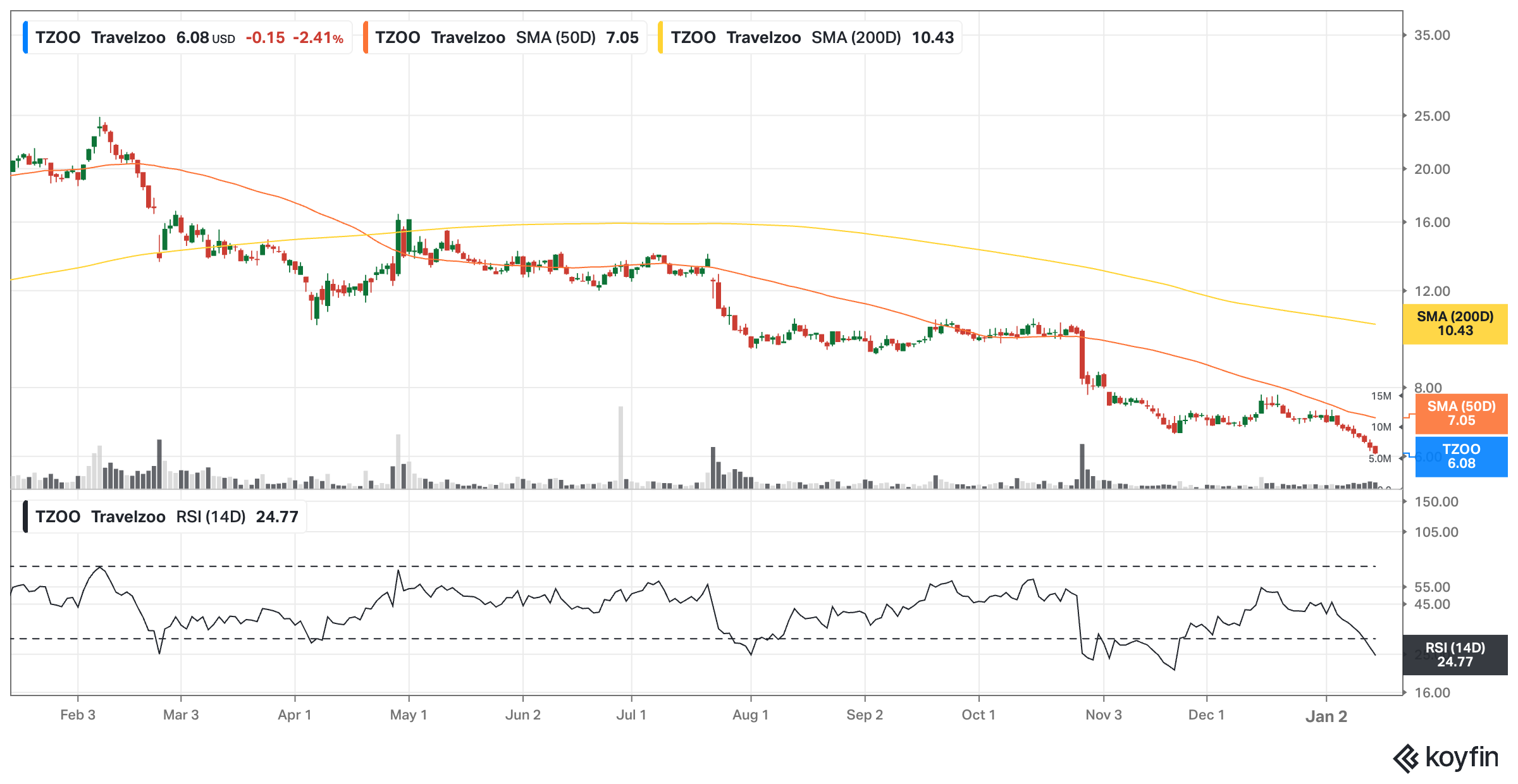 It doesn’t matter if markets are green or red; one push notification I always get is “new 52-week low for TZOO.”